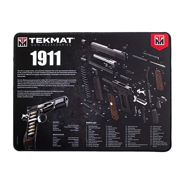 TekMat revolutionerade marknaden för rengöring av skjutvapen med sin serie av rengöringsmattor som är mer än bara skyddande arbetsytor. Dessa rengöringsmattor inkluderar diagram och scheman över dagens populära skjutvapen, vilket gör att användarna kan få en inblick i sitt vapen och enkelt demontera och montera om sina skjutvapen.