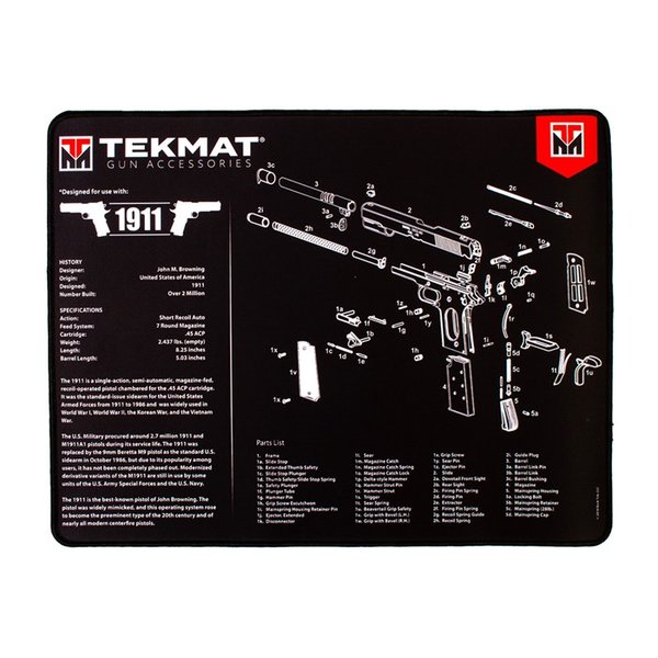 TekMat revolutionerade marknaden för rengöring av skjutvapen med sin serie av rengöringsmattor som var mer än bara skyddande arbetsytor. Dessa rengöringsmattor inkluderade diagram och scheman för dagens populära skjutvapen, vilket gjorde det möjligt för användare att få en inblick i sina vapen och enkelt demontera och montera dem igen.