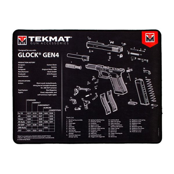 Företagets nya Ultra 20 Pistol Cleaning Mat fortsätter denna arv med några förbättrade element. Varje TekMat Ultra 20 Pistol Cleaning Mat är konstruerad med en klar dye-sublimationstryckteknik som gör mattan vattentät, repbeständig, olja- och kemikaliebeständig samt tvättbar.