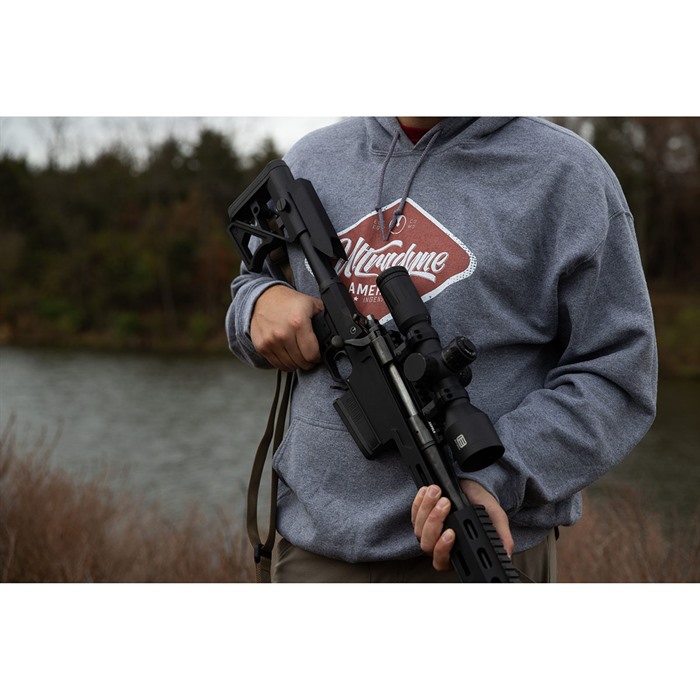 UD Justerbart Kolv är tillverkat av solid 6061 T6 aluminium, vilket gör det tillräckligt lätt för en lätt jaktgevärr men ändå starkt nog för att rymma tillbehör och vikter för ett tungt tävlingsgevärr. Det är helt justerbart med en ergonomisk tumskruv, och när det väl är justerat, förblir det i önskade inställningar utan något glapp eller irriterande skrammel.