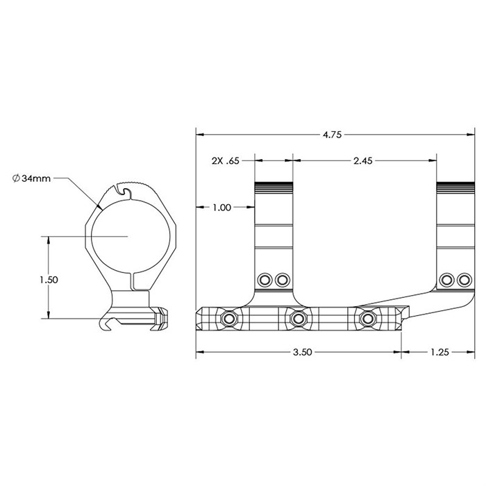 Featuring a rigid, lightweight design, the Ultralight 34mm Extended Scope Mount features a rear ring that is pushed forward 1", resulting in better eye relief. This scope mount is designed to fit AR type upper receivers with Mil-Spec 1913 Picatinny rails and features a cross-slot keyway that offers excellent recoil protection. Ultralight Scope Mounts free you from unnecessary bulk, providing one of the lightest mounts in the industry. FEATURES Made In America Select Your Finish: Anodized Black or Magpul FDE Cerakote Material: 6061 T6 extruded aluminum construction Scope Ring Size: 34mm Scope Mount Profile: Extended Weight(s): 4 oz Designed for AR type upper receivers Screw Torque: 15 in-lbs