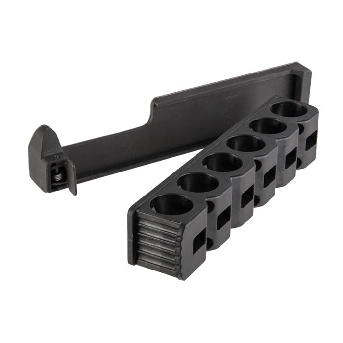 Universal Shotgun Shell Carrier har också åtkomstutskärningar som gör det möjligt för hagelgevärsägarna att nå viktiga mottagarstift för demontering. Patronhållaren är byggd för att fungera med både pump- och semi-auto åtgärder.