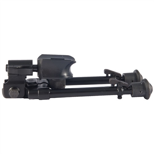 Modular, two-piece design provides easy, push-button bipod removal. In the field you can carry the legs on your rifle or in a backpack. Multi-pivot head pans right and left; cants to compensate for uneven ground. Height adjustable legs may be folded to the front or rear. Mounting adapter included, additional adapters let you quickly interchange bipods between rifles. Model 2 - bench/prone, has rubber feet. Mounts to QD swivel stud.