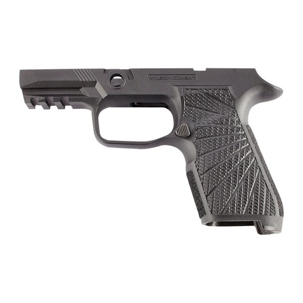 Revolutionize your shooting experience and upgrade the concealed carry potential of a SIG-SAUER P320 with the black Wilson Combat WCP320 no manual safety X-compact grip module. Their all-new molded polymer grips will not only improve your grasp on the gun but also control recoil better than before. Wilson Combat SIG SAUER Grip Modules are not compatible with California versions of the SIG SAUER P320. Revolutionize your shooting experience and upgrade the concealed carry potential of a SIG-SAUER P320 with Wilson Combat's reengineered grip frame. Their molded polymer grips will not only improve your grasp on the gun but also control recoil better than before. With its redesigned shape, texture, and ergonomics, these six new models are designed to give you that custom handcrafted feel in no time at all—available in both black or tan shades for standard-size frames as well as those equipped with manual safeties! Their fresh look at the P320 grip module incorporates the suggestions of tactical trainers, champion shooters, and firearms experts into the final product that has a look that is unmistakably "Wilson". They believe it is the most practical, comfortable, and stylish P320 grip available and the ideal choice for concealed carry and defensive handgun use. FEATURES Safety (select): Manual Safety, No Manual Safety Colors (select): Black, Gray, Green, Tan Caliber availability: 9mm, .40 S&W, .357 SIG Upgraded, high cut 1911 style beavertail grip tang for smooth draws Modified backstrap shape for more natural pointing and enhanced grip/recoil Undercut front-strap and reshaped, radiused trigger guard for the highest grip possible Improved grip traction and increased grip pattern coverage with Wilson Combat's exclusive Starburst grip pattern on the sides and aggressive texturing on the front and backstrap Internal slots for rod-style Tungsten weights (NW734) Not compatible with X-Five Tungsten weights Factory SIG-SAUER magazine release, spring, and lock included Important Note: Wilson Combat SIG SAUER Grip Modules are not compatible with California versions of the SIG SAUER P320. SPECS Typical Usage: Competition, Practice, Self Defense, Tactical, Target Firearm Type: Handgun Handgun Type: Sig P320 x-Compact Manufacturer: Wilson Combat Handgun Parts Type: Grip Modules Disclaimer: ""SIG""is a federally registered trademark of SIG SAUER Inc. and is one of many trademarks owned by SIG SAUER Inc. Neither Wilson Combat nor this website is affiliated in any manner with or otherwise endorsed by SIG SAUER Inc. The use of "SIG" or "SIG SAUER'' on this page is merely to advertise the sale of SIG pistols, parts, or components."