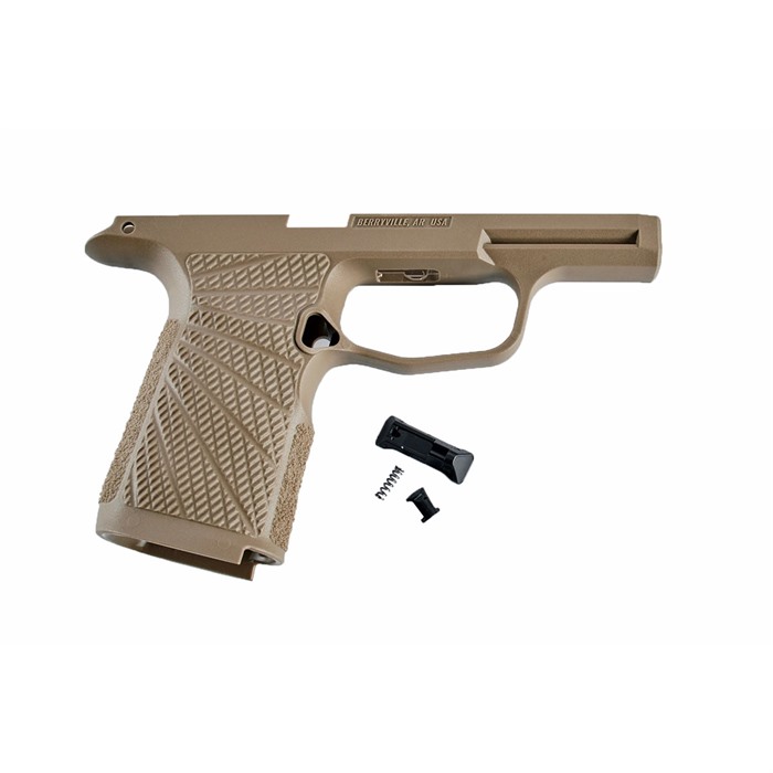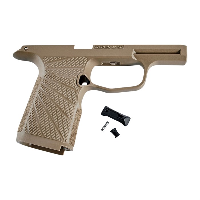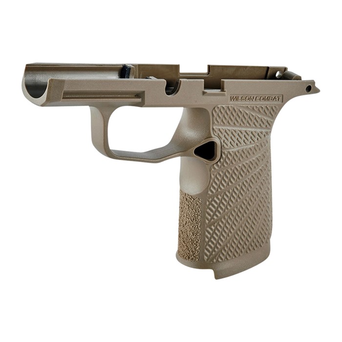 Wilson Combat has reengineered the SIG-SAUER P365/P365 XL grip frame to optimize its practical shooting and concealed carry potential. These all-new molded polymer grip modules will enhance your grip and improve recoil control. The significant improvements in shape, texture, and overall ergonomics will give your P365 the superb feel of an expertly hand sculpted custom gun with a simple grip change. These six new models cover standard and XL P365 frames, with or without a manual safety in black and tan color. Wilson Combat’s fresh look at the P365 grip module incorporates the suggestions of tactical trainers, champion shooters, and firearms experts into the final product that has a look that is unmistakably “Wilson”. It is the most practical, comfortable, and stylish P365 grip available and the ideal choice for concealed carry and defensive handgun use. These are non-serialized, newly manufactured grip modules and are not serial numbered firearms. The Wilson Combat SIG-SAUER P365 Polymer Grip Module features: Upgraded, high-cut 1911-style beavertail grip tang for smooth draws Modified backstrap shape for more natural pointing and enhanced grip and recoil control Undercut front-strap and reshaped, radiused trigger guard for the highest grip possible Improved grip traction and increased grip pattern coverage with Wilson Combat’s exclusive Starburst grip pattern on the sides and aggressive texturing on the front and backstrap Internal Slots for Rod-style Tungsten Weights (Sold separately) Factory SIG-SAUER magazine release, spring, and lock included Compatible with all standard holsters 1.4 oz 6 1/8" long 3 1/8" tall 2" grip (front to back) 1 1/8" grip (side to side) Light Compatability: Streamlight - TLR-6 Tactical Gun Light Streamlight - TLR-7 Sub Ultra-Compact Tactical Gun Light Crimson Trace LTG 772 Lightguard Crimson Trace LTG 422 Sig Sauer Foxtrot365 Surefire XSC Micro-Compact Handgun Light Any light compatible with Sig Factory 365 Modules