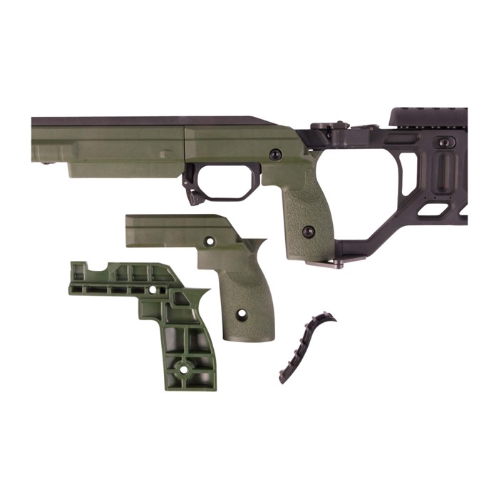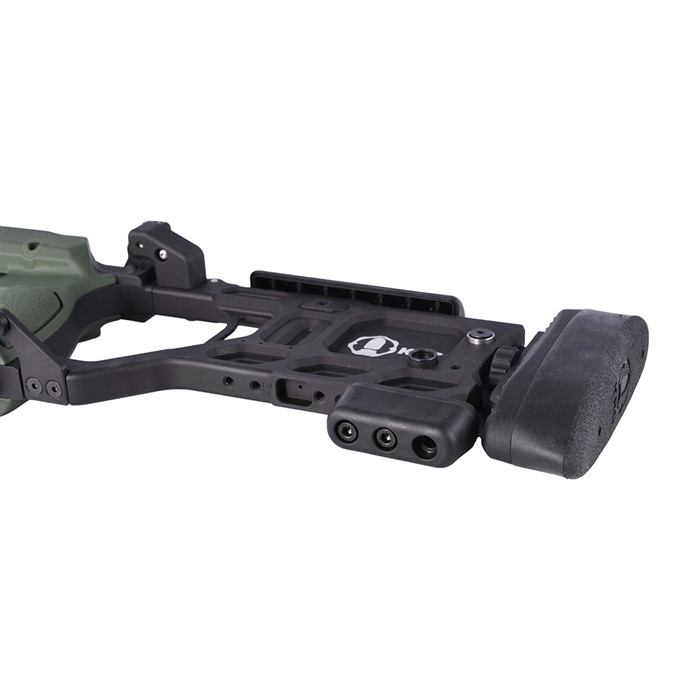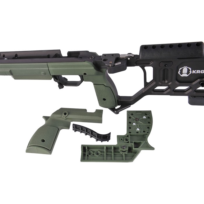 KRG:s modulära greppaneler gör att skytten kan skräddarsy passformen av kolven efter sin hand, vilket, i kombination med de andra justeringarna, ger en kolv som är exakt som den behöver vara för just den skytten.