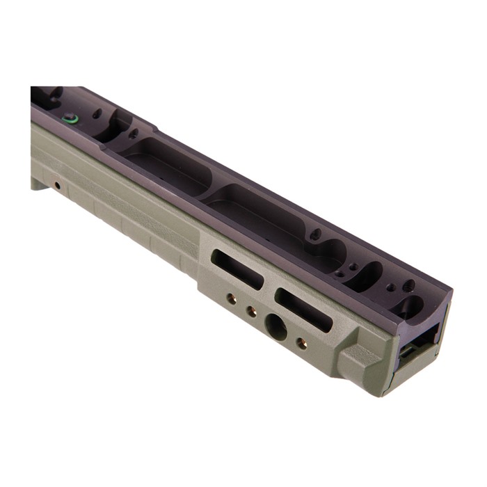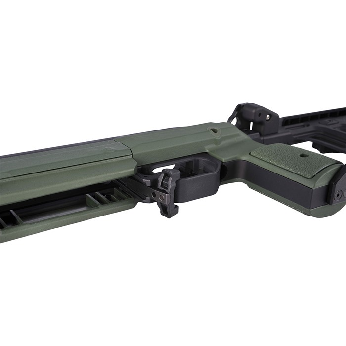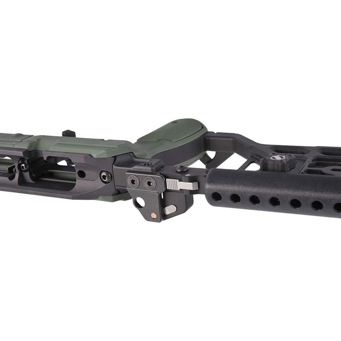 Direkt ur lådan möjliggör det användning av AICS-stil magasin (ingår ej) i ditt gevär utan något speciellt bottenmetall. Många typer av tillbehör kan läggas till vid de många fästpunkterna, inklusive: