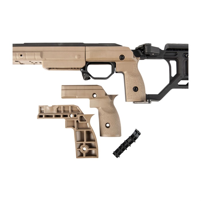 KRG:s modulära greppaneler gör att skytten kan anpassa passformen av kolven till sin hand, vilket, i kombination med de andra justeringarna, ger en kolv som är exakt så som den behöver vara för just den skytten. Den senaste generationen (6) har en ny låsmekanism för längd på draget som är något mer strömlinjeformad än tidigare generationer och möjliggör snabbare justeringar.