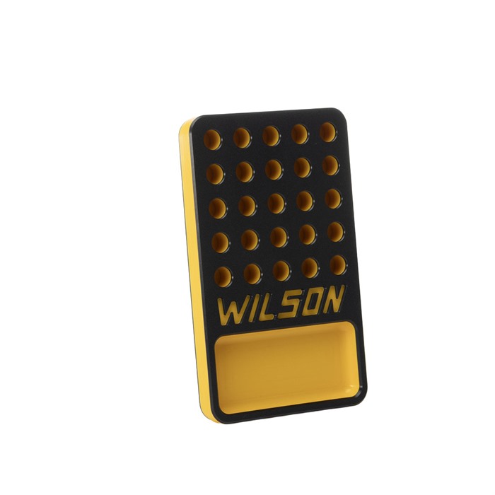 L.E. WILSON, INC. RELOADING TRAYS WITH CUP The L.E. Wilson 25-Round Reloading Tray (.473 case head) streamlines brass handling for the .308 Win family and other cartridges sharing the .473″ bolt face. Precision-machined from durable HDPE plastic, it pairs a low-profile 25-hole layout with a convenient bullet/primer cup for efficient sorting, charging, and inspection. The black/yellow finish is tough and easy to spot on the bench, and the spacing gives you room to grab cases without tipping. Proudly made in the USA. FEATURES 25-Round Capacity – Holds up to 25 cases securely for organized case prep. Integrated Bullet/Primer Cup – Convenient storage for bullets or primers during reloading. Precision-Machined HDPE Plastic – Durable, solvent-resistant material that won’t corrode. Low-Profile Design – Provides stability and easy access to cases without tipping. Black/Yellow Color Scheme – High-visibility finish for quick identification on the bench. Caliber-Specific Hole Sizes – Available in multiple head diameters (.380, .440, .473, .506, .533) to fit common cartridge families.