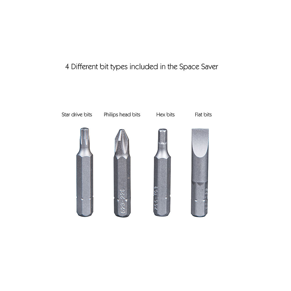 Den perfekta storleken gör den också idealisk att ta med på dina resor till skjutbanan och i fält. I satsen ingår standard-, Phillips-, hex- och torx-bitar. En 2″ lång #2 Phillips-bit är perfekt för installation av rekylplattor, och en hex-till-kvadrat konverteringsbit gör att du kan använda 1/4″ kvadrataxlar och andra tillbehör.