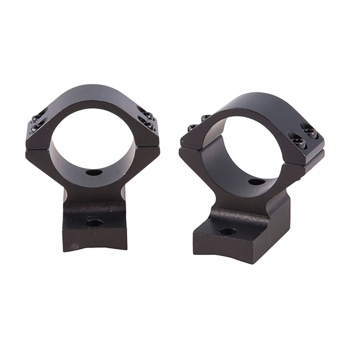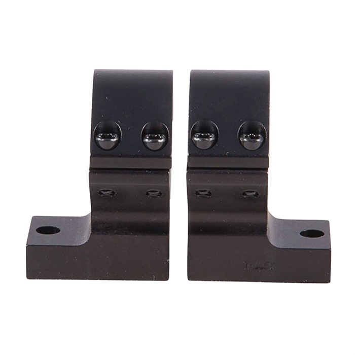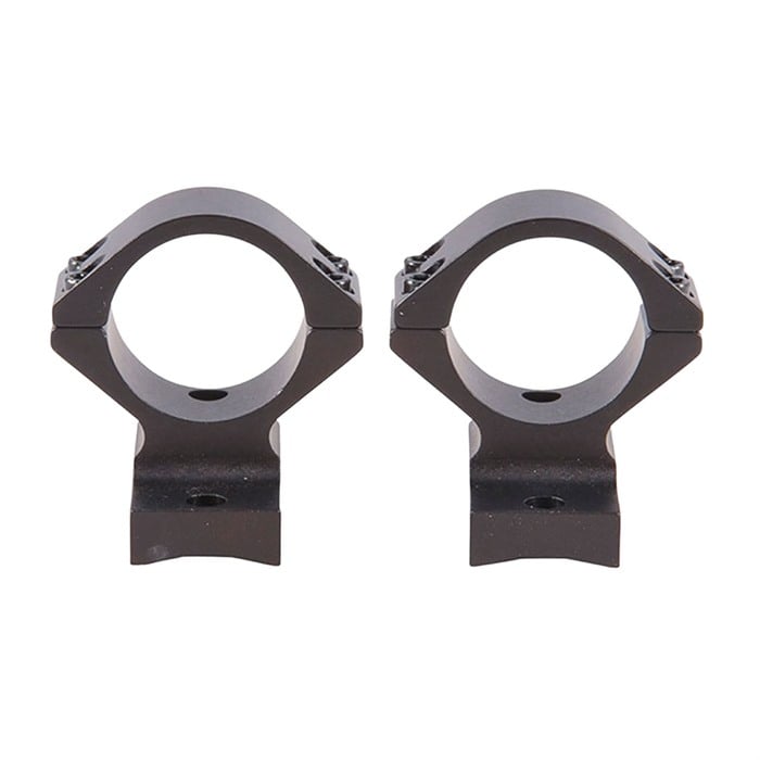 SPECS: 7000 series aluminum, black, anodized, matte finish. Accepts 1" dia. scopes, unless otherwise listed in fits column for 30mm dia. scopes. Height from bottom of ring to top of receiver: Low - .400" (10.1mm), Med - .500" (12.7mm). High - .640" (16.3mm), X‑High - .740" (18.8mm). Approx. weight 2.1 oz. (59 g). Some heights vary, see chart below. Rem. 700 also fits 721/722/725 and 40X models. Rem. Model Seven fits receivers with four screw holes. Savage AccuTrigger fits round top centerfire receivers with AccuTrigger. Win. 70 fits .860" rear hole spacing only.
