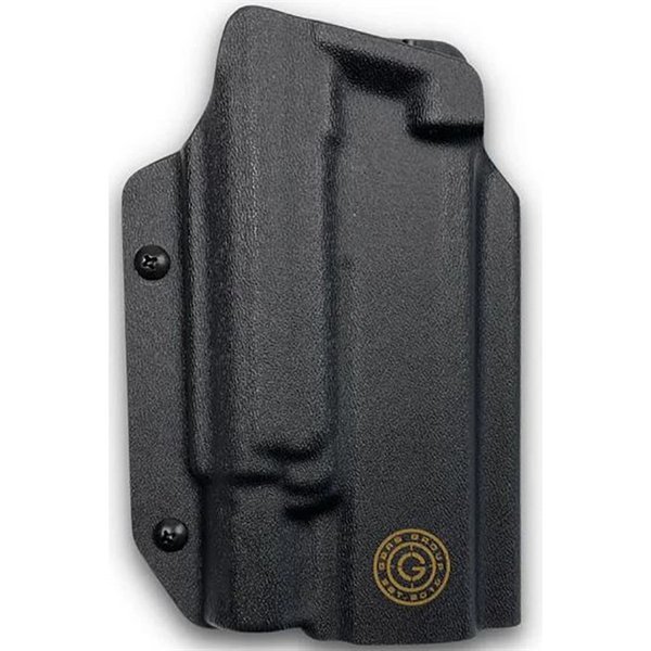 GBRS Group x Priority 1 Modular Outside the Waistband Holster är konstruerad av Boltaron med justerbar skruvförsedd retention för att passa användarens preferenser. Den öppna designen tillåter användning av gängade pipor och kompenserare. Holstern är även optimerad för att rymma de flesta slide-monterade optik.