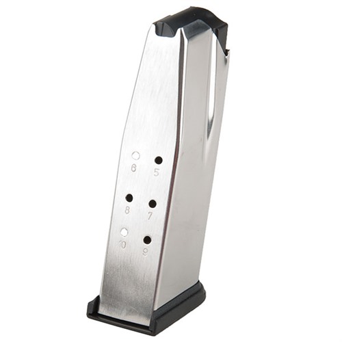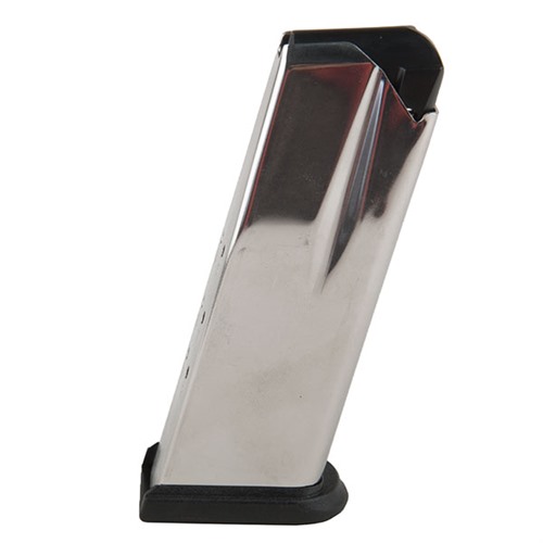 SPECS: Body - Highly polished stainless steel. Base Pad & Follower - Polymer, black. Capacity: .45 ACP - 10- and 9-round capacities available.