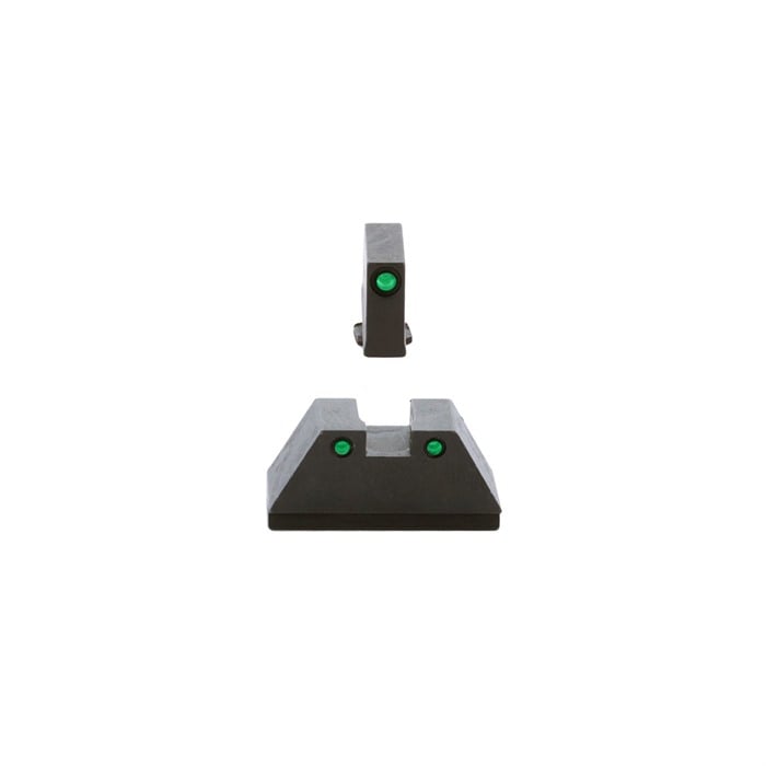 Suppressor Sights for Glock® available with or without Tritium Suppressor height sights allow for a proper sight picture when firing a suppressed Glock or when using an RMR equipped slide such as the Tactical Glock Slide from One Source Tactical Night Sight model includes Trijicon Tritium inserts Nights Sight has a 3-Dot sight picture, with the Tritium illuminating green on both the front and rear sight The standard Suppressor Sight set does not feature dots or Tritium, allowing for a clean sight picture The standard front sight features a serrated face, for an anti-glare sight picture The standard set is an excellent option when using iron sights as backups on an RMR equipped slide Machined steel construction Matte black finish